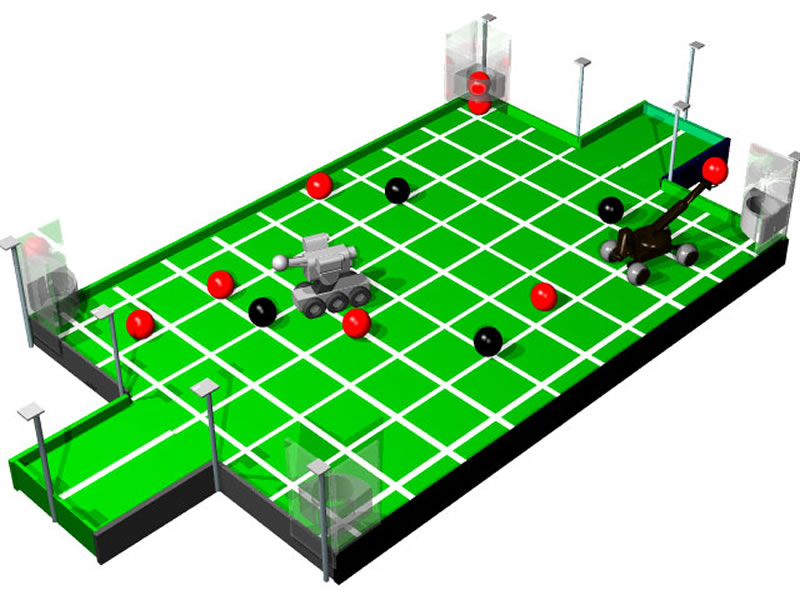Les robots doivent aller percé un ballon dans le camp adverse, ce ballon étant protégé par une plaque de plexiglas.
