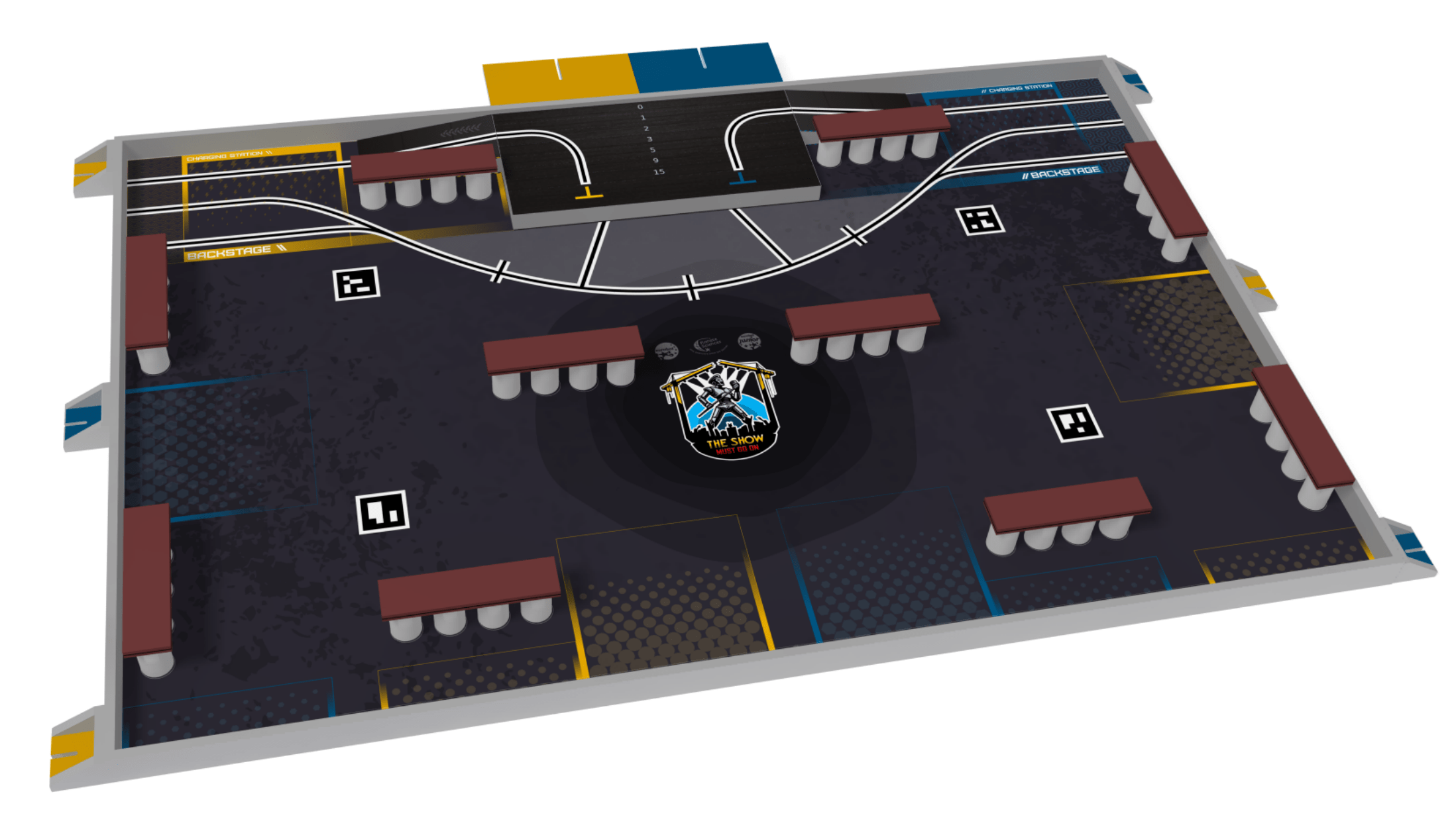 Une couleur de quilles est attribuée à chaque équipe. Pour gagner la partie, les robots doivent renverser leurs quilles. Au départ, celles-ci se trouvent de l’autre côté d’un fossé.